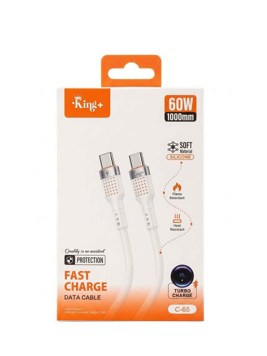 کابل شارژر دو سر تایپ سی سیلیکونی کینگ پلاس مدل HK-C65