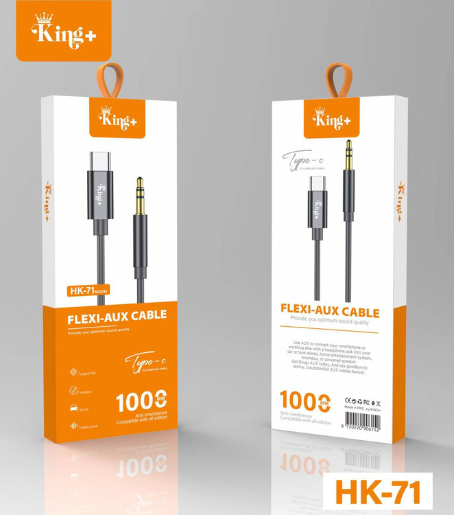 کابل صدای کینگ پلاس مدل HK-71 یکی از بهترین و خوش ساخت ترین کابل های AUX با رابط تایپ سی میباشد.این کابل علاوه بر کیفیت صدای عالی و بدون نویز به تمامی دستگاهای اندرویدی و آیفونی سازگار میباشد.