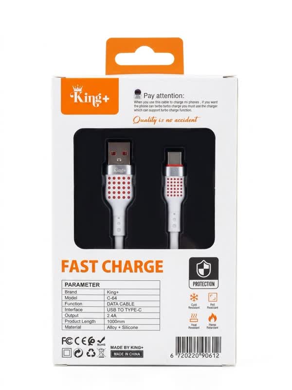 گابل شارژر تمام سیلیکونی کینگ پلاس مدل king plus C65 با استفاده از مواد مرغوب سیلیکون تولید گردیده که باعث میشود به مرور زمان سرعت شارژ شما کم نشود و ماندگاری فوق العاده ای بدهد. از دیگر مزیت های این مدل عدم کثیف شدن به واسطه وجود سیلیکون اصلی میباشد.