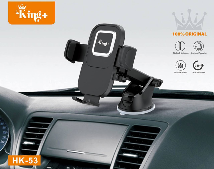 هلدر موبایل کینگ پلاس +King مدل HK-53 یک پایه نگهدارنده مخصوص تلفن همراه قوی و با کیفیت که با وزن سبک و کوچک است. یکی از ویژگی های منحصر به فرد آن چرخش 360 درجه ی آن است که به راحتی می توانید آن را روی داشبورت ماشین و یا هر سطوح دیگری نصب نمایید و از دیدن فیلم و عکس در موبایل خود لذت ببرید. این پایه یکی از بهترین و کاربردی ترین لوازم جانبی های گوشی می باشدکه در مسافرت و مسیر های طولانی میتوان از آن برای مسیر یابی بهتر استفاده کرد.