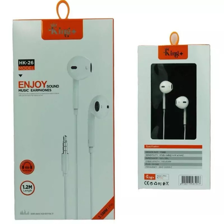 هندزفری کینگ پلاس مدل HK-26 از جنس سری های سرامیکی و با آرگونومی بسیار خوبی که دارد علاقه مندان بسیار زیادی دارد.شما با این هندزفری میتوانید تا ساعت ها موزیک بشنوید ورزش کنید و لذت ببرید. این هندزفری دارای کلید های قطع و وصل صدا و میکرفون جهت تماس و مکالمه عالی طراحی شده است.