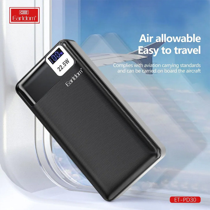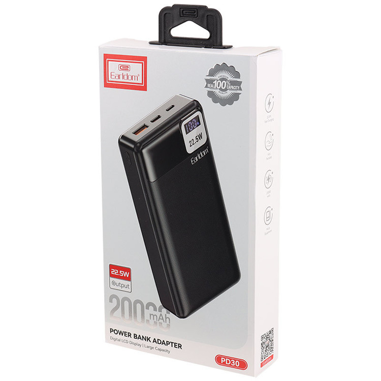 پاوربانک ارلدام ET-PD30 پاور بانکی قدرتمندو با کیفیت ساخت بسیاز بالا میباشد که میتواند حداکثر تا 4 بار گوشی مورد نظر شما را شارژ کندقدرت شارژ22.5 واتی این محصول از مزایای آن بوده به صورت شارژ سریع میتوان از آن استفاده کرد.این پاور بانک مناسب کلیه دستگاهای اندروید و آیفون میباشد این شارژر همراه با داشتن قابلیت شارژ امن میتواند گزینه بسیار مناسبی برای شارژ دهی انواع ایرپاد، دوربین و آیپد شما باشد.